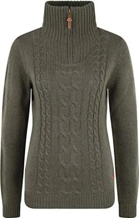 OXPhilicita Damen Strickpullover Troyer Grobstrick Pullover 100% Baumwolle Regular fit, Größe:L, Farbe:Dark Grey (792890)