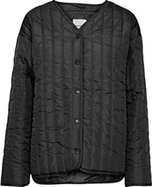 OXSaggy Damen Steppjacke Übergangsjacke Jacke mit Druckknöpfen V-Ausschnitt Oversize Fit leicht gefüttert, Größe:M, Farbe:Black (194007)
