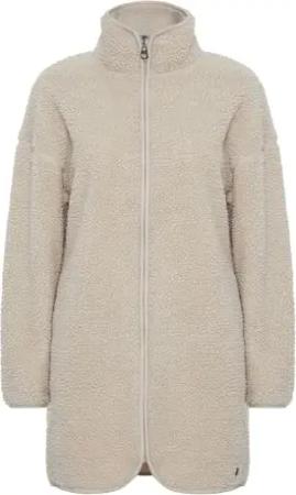 OXTova Damen Sweatjacke Lang Jacke mit Teddy-Fell Stehkragen Reißverschluss Eingrifftaschen Loose fit, Größe:M, Farbe:Oyster (141107)