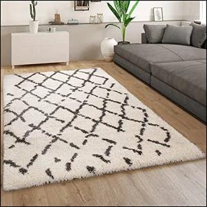 Hochflor-Teppich, Shaggy Im Flokati-Stil Mit Rauten-Muster In Grau Weiß, Grösse:160x230 cm
