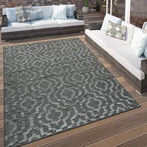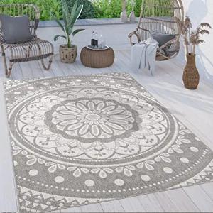 Outdoor Teppich wetterfest & langlebig Moderne Boho-Designs mit 3D-Effekt Skandi-Look UV-beständig & robust für Balkon, Garten, Wohnzimmer & Küche, Grösse:200x280 cm, Farbe:Grau 4