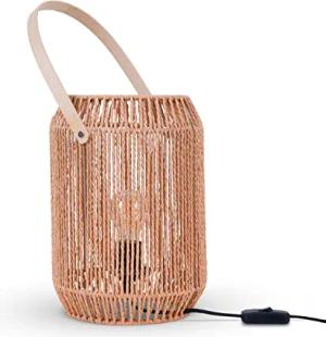 Tischlampe Nachttischlampe Schreibtischlampe Nachttisch Lampe Leselampe Lampenschirm Boho Deko Korb E27, Lampenart:Typ 1, Farbe:Natur