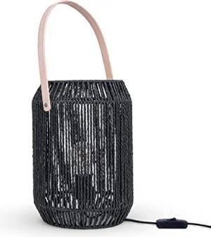 Tischlampe Nachttischlampe Schreibtischlampe Nachttisch Lampe Leselampe Lampenschirm Boho Deko Korb E27, Lampenart:Typ 1, Farbe:Schwarz