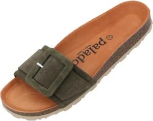 Pantoletten Damen Nubra - bequeme Sandalen Made in Spain - Hausschuhe mit dämpfendem Kork-Fußbett - modische Sommerschuhe Khaki UK10 - EU44