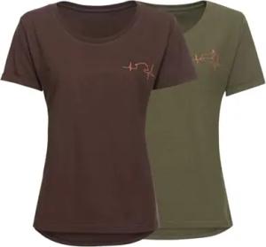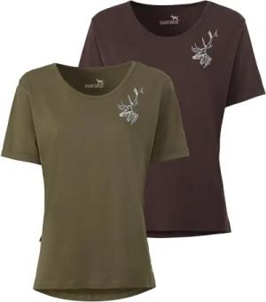 Damen T-Shirts 2er-Pack Hirsch Oliv/Braun 3XL