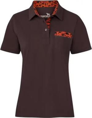 Damen Poloshirt Waldtier-Detail Braun/Orange, XXL
