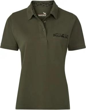 Damen Poloshirt Waldtier-Detail Oliv/Schwarz, S