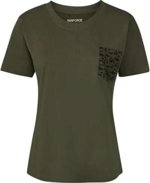 Damen T-Shirt Brusttasche Waldtiere Oliv/Schwarz, XXL