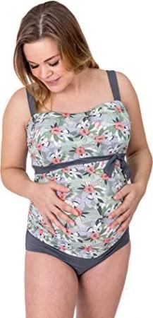 Umstands-Badeanzug Anina sehr raffinerter Schnitt Cup B/C/D Hawaii-Print grau Mehrfarbig Gr. XL