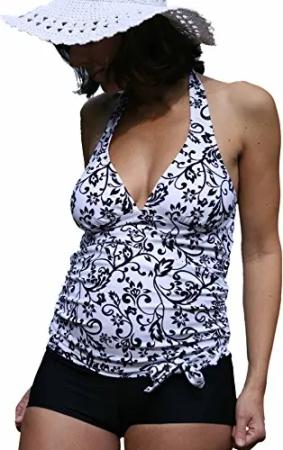 Umstands-Tankini Set Black & White ♥ Cup B/C/D/E Schwarz Weiß (Schwarz-Weiß Druck, S (Cup D/E))