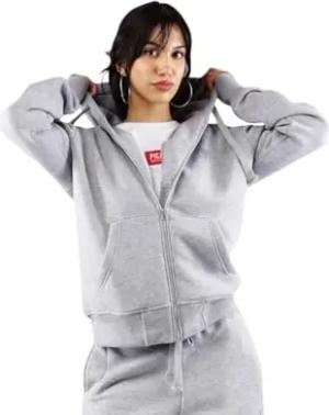 Damen Zip Hoodie Hustle – Kapuzenjacke mit Reißverschluss, Logo-Print, sportlich lässig, ideal für Freizeit, Streetwear & Alltag (DE/NL/SE/PL, Alphanumerisch, XL, Regular, Regular, Grey)