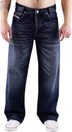 Zicco 474 Herren Jeans | Wide Fit Straight Leg | Baggy Fit Hose | Locker geschnitten | Washed Dark Blue Denim