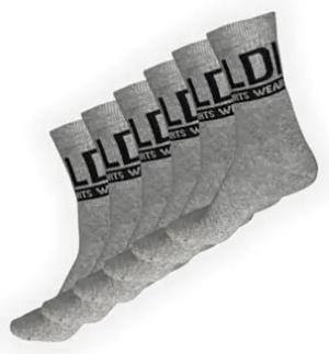 Herren Sportsocken 6er-Pack | Logo Socken | Mittelhoher Schaft | Atmungsaktive Baumwolle | Rippbündchen für sicheren Halt (DE/NL/SE/PL, Numerisch, 41, 45, Regular, Regular, Grey)
