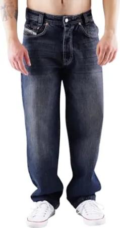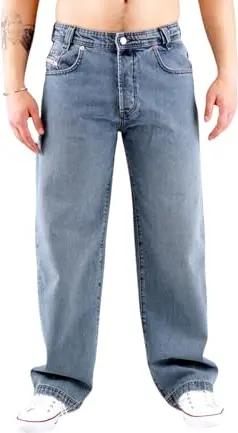 Zicco 475 Herren Baggy Jeans Extra Weit aus 100 % Baumwolle mit Tiefem Bund Lockerem Schnitt Streetwear im 90er Vintage Style (DE/NL/SE/PL, Bundweite & Schrittlänge, 33, 34, Lagoon)