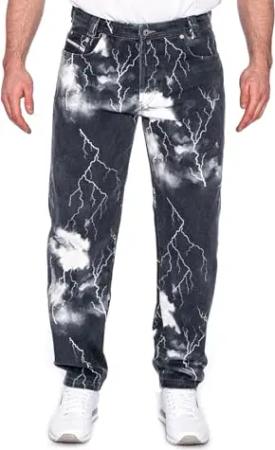 Zicco 472 Flash Jeans | Loose & Relaxed Fit | Karottenschnitt Hose | Lässig & Locker Geschnitten | Patterned (W38/L30, Black)