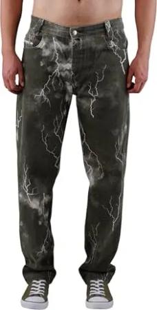 Zicco 472 Flash Jeans | Loose & Relaxed Fit | Karottenschnitt Hose | Lässig & Locker Geschnitten | Patterned (W38/L30, Khaki)