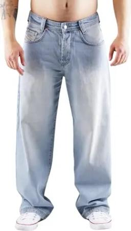 Zicco 475 Herren Baggy Jeans Extra Weit aus 100 % Baumwolle mit Tiefem Bund Lockerem Schnitt Streetwear im 90er Vintage Style (DE/NL/SE/PL, Bundweite & Schrittlänge, 31, 30, Washed Ocean Blue)