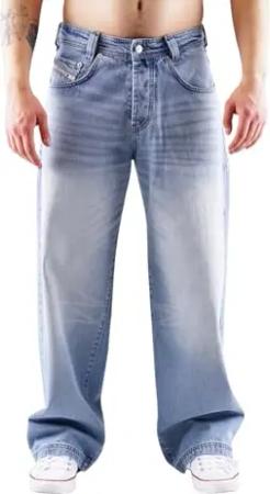 Zicco 475 Herren Baggy Jeans Extra Weit aus 100 % Baumwolle mit Tiefem Bund Lockerem Schnitt Streetwear im 90er Vintage Style (DE/NL/SE/PL, Bundweite & Schrittlänge, 36, 32, Washed Ocean Blue)