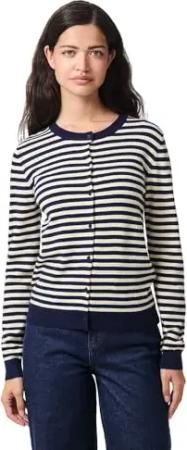 Damen Pcria Ss Fold Up Tee Stripes Noos Bc, Mazarine Blue,XL