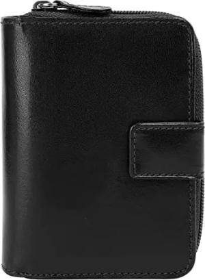 kleine Geldbörse im Hochformat Echt Leder Herren | Slim Wallet mit Fotofach | Portemonnaie mit Druckknopf | Brieftasche mit Reißverschluss schwarz | 021396
