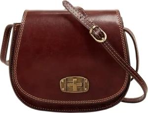 Umhängetasche Echt Leder Damen | Made in Italy, Crossbody Bag, Messenger Bag, Handtasche dunkelbraun, 2 Hauptfächer, Steckschloss, verstellbarer Riemen braun | 019349