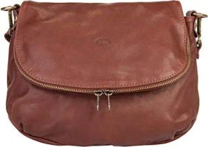 Umhängetasche Echt Leder Damen Made in Italy, Crossbody Bag, Schultertasche, Handtasche aus Rindleder, verstellbarer Riemen braun 016417