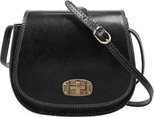 Umhängetasche Echt Leder Damen | Made in Italy | kompakte Crossbody | praktische Handtasche mit Innenfächern schwarz | 016176