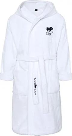 Unisex Bademantel aus Baumwolle mit Label-Stickereien, Bright White, XL