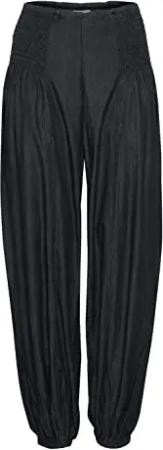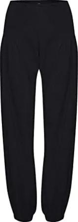 PZJILL Damen Hose Stoffhose Lange Haremshose Pumphose Pluderhose mit elastischem Bund 100% Baumwolle Regular Fit, Größe:S, Farbe:Black Beauty (193911)