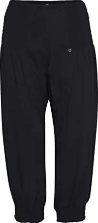 PZJILL Damen Hose Stoffhose Haremshose Pumphose Pluderhose mit elastischem Bund Capri Länge 100% Baumwolle Regular Fit, Größe:M, Farbe:Black Beauty (193911)