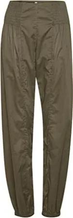 PZJILL Damen Hose Stoffhose Lange Haremshose Pumphose Pluderhose mit elastischem Bund 100% Baumwolle Regular Fit, Größe:XL, Farbe:Kalamata (190510)