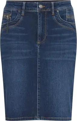 PZKAROLINA Rock Baumwollmischung Eingrifftaschen Reißverschluss figurumspielend, Größe:34, Farbe:Dark Blue Denim (200002)