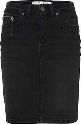 PZKAROLINA Rock Baumwollmischung Eingrifftaschen Reißverschluss figurumspielend, Größe:36, Farbe:Black Denim (200004)