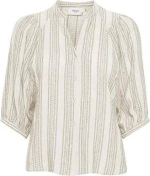 PZLAILA Damen 3/4 Ärmel Bluse mit Knopfleiste und Stehkragen Gemustert, Größe:M, Farbe:Turtledove (125202)