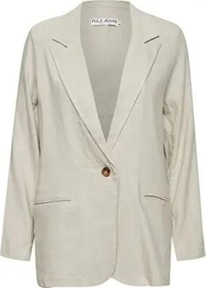 PZLUCA Damen Blazer Longblazer Jacke aus hochwertigem Leinenmix mit Reverskragen und Knopf Regular Fit, Größe:40, Farbe:Sandshell Melange (1309071)
