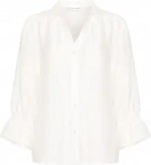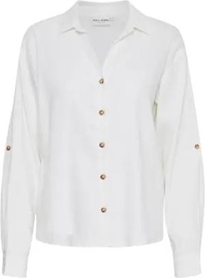 PZLUCA Damen Hemdbluse Blusenshirt Shirtbluse ungefüttert Hemdkragen Knöpfe V-Ausschnitt Leinenmix leicht elastisch Regular Fit, Größe:M, Farbe:Blanc de Blanc (114800)