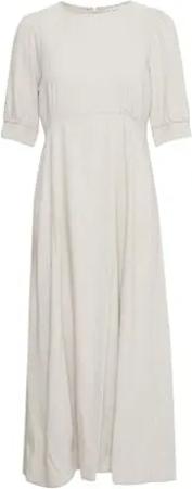 PZLUCA Damen Kleid Lang Maxikleid A-Linien-Form Rundhals Halbarm Leinenmix leicht elastisch Regular Fit, Größe:M, Farbe:Sandshell Melange (1309071)