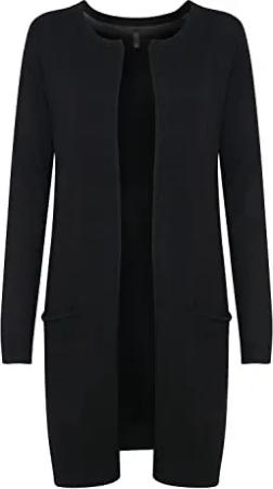 PZSARA Damen Lange Strickjacke Feinstrick Cardigan Longstrickjacke mit aufgesetzten Taschen, Größe:XS, Farbe:Black (5000199)