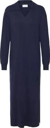 PZSara Damen Strickkleid Feinstrickkleid Kleid mit V-Ausschnitt Umlegekragen Regular fit, Größe:M, Farbe:Dark Sapphire (194020)
