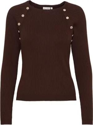 PZSARA Damen Strickpullover Feinstrick Pullover mit Rundhalsausschnitt und farblich abgesetzten Knöpfen im Schulterbereich, Größe:XL, Farbe:Java Melange (1910161)