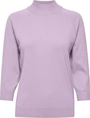 PZSARA Damen Strickpullover Feinstrick Turtleneck Pullover Stehkragen und leicht verkürzten Ärmeln, Größe:L, Farbe:Lavender Frost Melange (1535071)