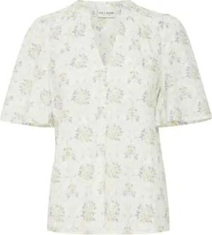 PZWILLA Damen Bluse Shirtbluse Shirt ungefüttert V-Ausschnitt 100% Baumwolle Regular fit, Größe:M, Farbe:White Printed (201705)