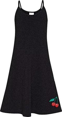 Dotties & Cherry Girl Kinder A-Linien-Kleid schwarz Allover, Rundhals, gepunktet, ohne Kragen, A-Linie, ohne Ärmel, Freizeit, Knielang, Größe:134/140
