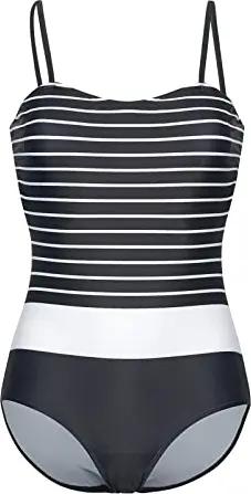 Harmony Damen Badeanzug schwarz Allover, toller Materialmix aus Polyester und Elasthan, Badeanzug mit Spaghettiträgern, gestreiftes Design, Größe:XS