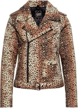 Damen Biker Jacke Biker Style Slim Fit Leo Leoparden Optik Rebel Woman Rockabella 50S Rockabilly Vintage Rock 'N' Roll Retro Style Motor Queen Service