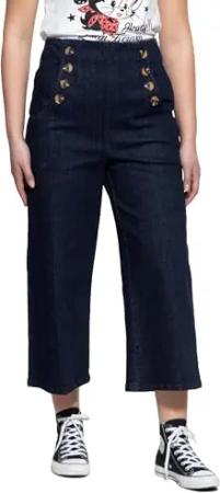 Damen Capri Jeans 7/8 Hose Vintage-Charme Retro High Waist Hoher Bund Knopfleiste