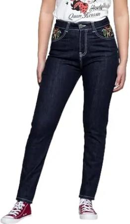 Damen Jeanshose High Waist Slim Fit Western-Style 50S Rockabilly Vintage Rosen Pants Denim Roses
