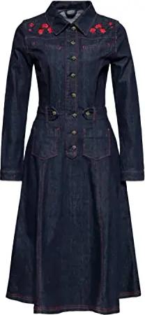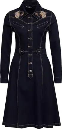 Damen Jeanskleid Denim Kleid Western Vintage Swingkleid 50S Rockabilly Stickerei Roses Roses