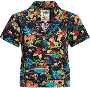 Damen T-Shirt Hawaii Tiki Honolulu Vintage Retro Rockabilly 50s Print Artwork Comic Hula Honolulu