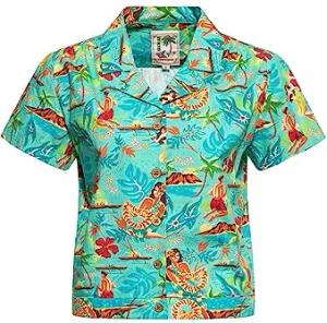 Damen Hawaii Bluse Cropped Bluse Hemdbluse Hawaiishirt Lago Di Garda Gardasee Italy Retro Vintage Crop Top 50S Rockabella Lago Di Garda